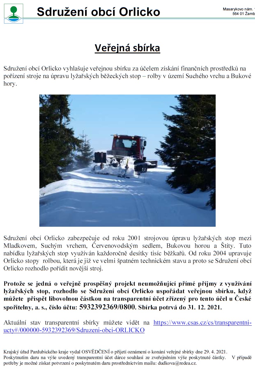 Úvod > Obec > Aktuality > Veřejná sbírka - pořízení stroje na úpravu lyžařských běžeckých stop v území Suchého vrchu